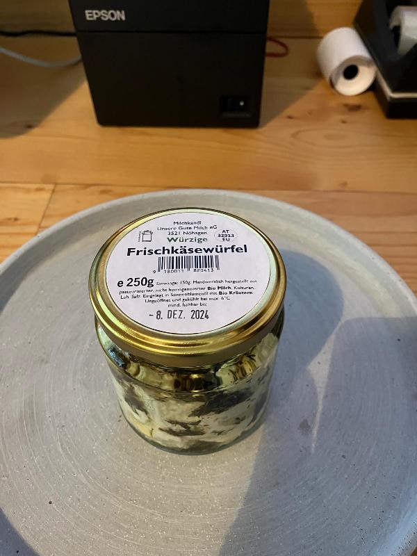 → Frischkäsewürfel in Gewürzöl 150/250g